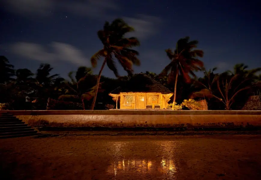 The cottages have a huge double bed or two generous twin beds, a sitting area, a bathroom with 2 sinks, as well as a shower with hot and cold water. There is also a wall-to-wall coconut palm matting on the floor which gives all the cottages that fitting Swahili feel.