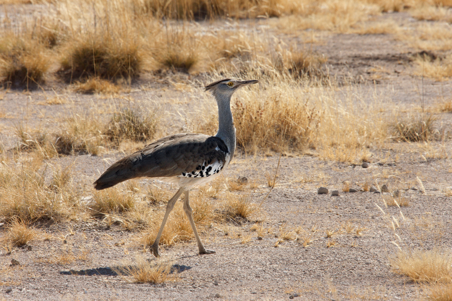 5. The Kori Bustard: Prepare to be dazzled by the Kori Bustard, the world’s heaviest flying bird. During mating season, watch as males inflate their necks like giant blue balloons and strut their stuff with exaggerated steps.