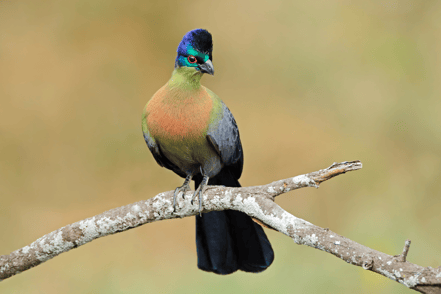 2. The Hartlaub Turaco: Cloaked in a coat of emerald green, accented with sapphire wings and a crimson eye ring, this avian aristocrat graces the mountain forests of Kenya, Tanzania, and Uganda. Its acrobatic movements and loud, chattering calls make it a delightful addition to any safari soundtrack.