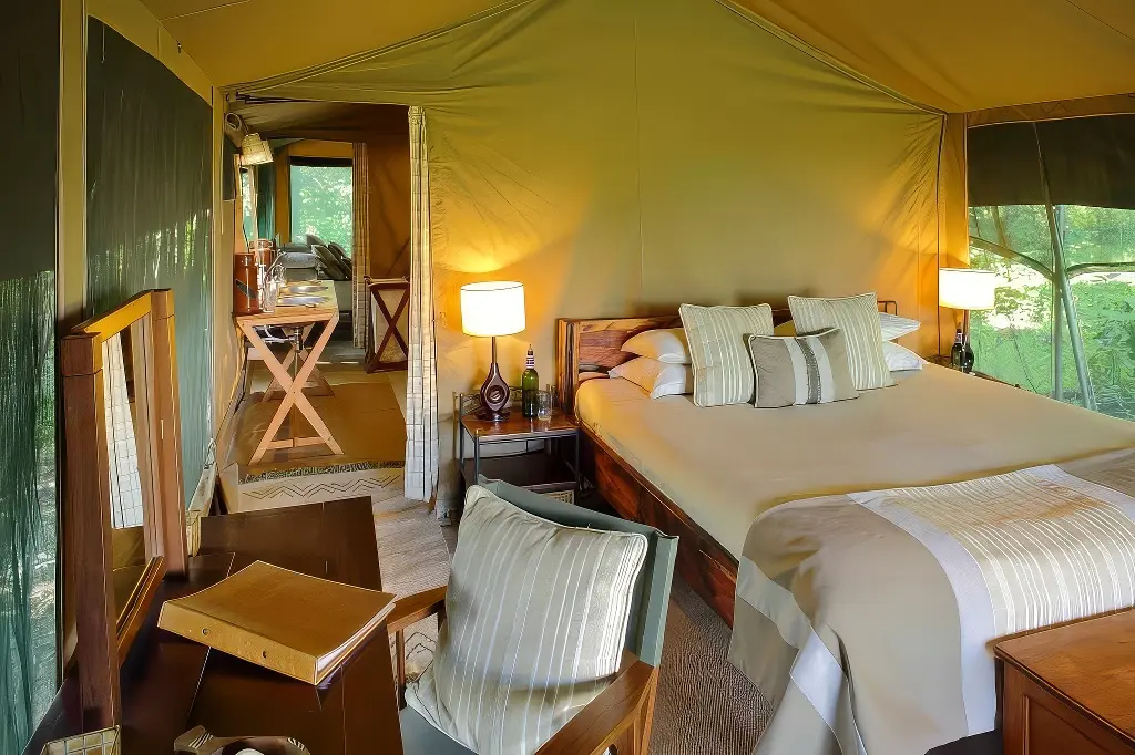 We are sitting on a slightly raised wooden deck in the mess area of the camp as the Talek River stretches before us, snaking across the plains and disappearing into the horizon. Guests need not even leave the breakfast table to tumble about in the back of a landcruiser chasing a crossing as it happens right in front of your nose. If you do wish to head out, the Mara River is close enough to check out other crossing points.